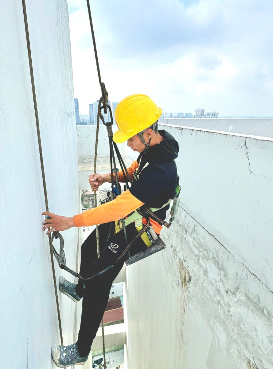 Chống thấm tường mặt ngoài tại toà nhà Galaxy 9 Quận 4
